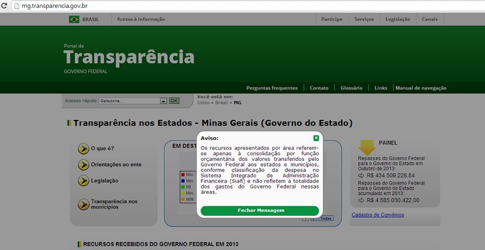 o site do governo passou a estampar um pop-up com o aviso: “Os recursos