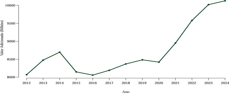 Gráfico 1 – Evolução do Valor Adicionado Bruto Real do Brasil (2012- 2024).